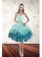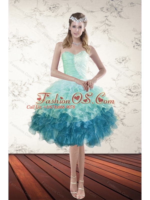 Pretty Multi Color Sweetheart Ruffled Prom Gown with Beading