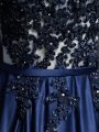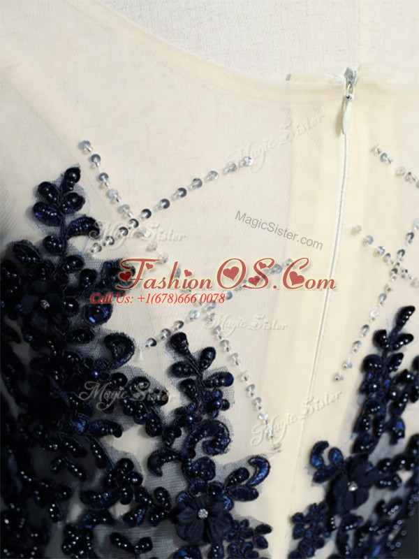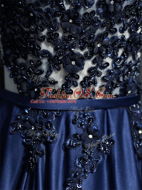 Pretty Navy Blue Empire Taffeta Scoop Sleeveless Beading and Appliques Zipper Brush Train