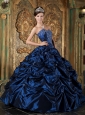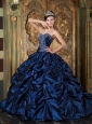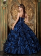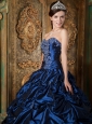 Pretty Navy Blue Quinceanera Dress Sweetheart Picks-up Taffeta Ball Gown