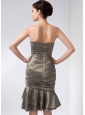 Home >  Special Occasion Dresses >  Mother of the Bride Dresses > Pretty Olive Green Mother Of The Bride Dress Column Sweetheart Appliques Knee-length Taffeta
