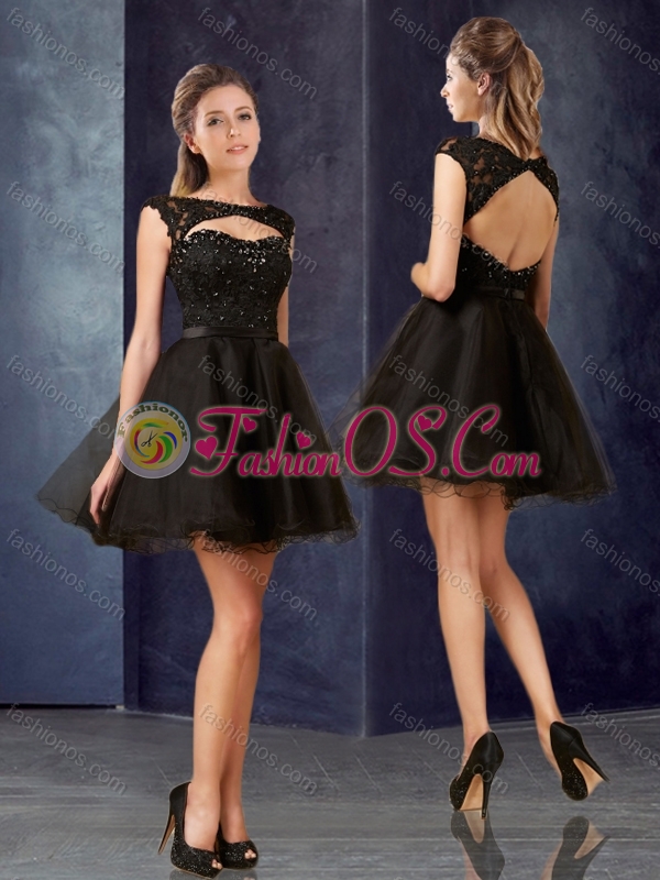 Home >  Special Occasion Dresses >  Homecoming Dresses > Pretty Open Back Bateau Black Homecoming Dress with Lace and Belt