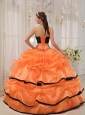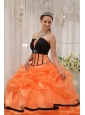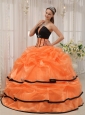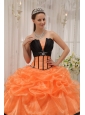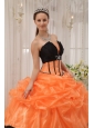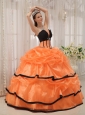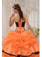 Home >  Quinceanera Dresses >  Popular Quinceanera Dresses > Pretty Orange and Black Quinceanera Dress Strapless Satin and Organza Beading Ball Gown