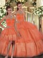Home >  Quinceanera Dresses >  Detachable Quinceanera Skirts > Pretty Orange Sweetheart Lace Up Ruffled Layers Ball Gown Prom Dress Sleeveless