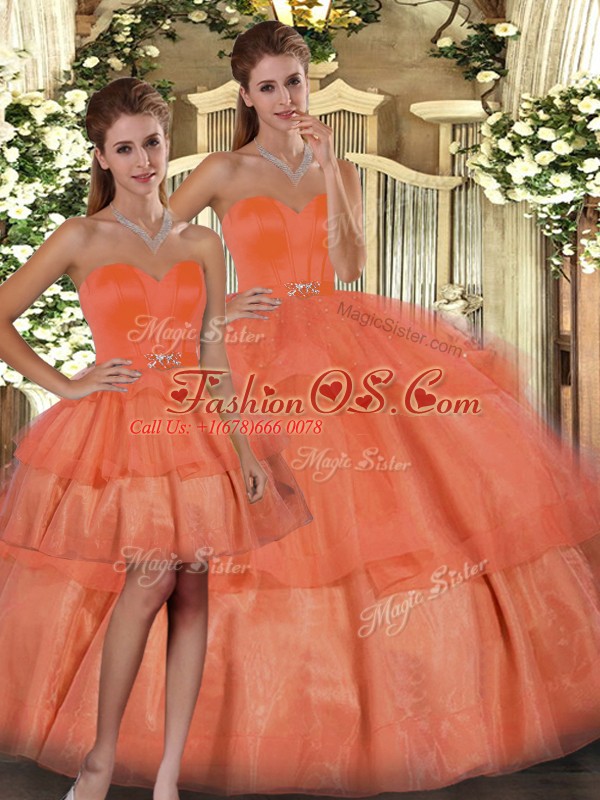 Pretty Orange Sweetheart Lace Up Ruffled Layers Ball Gown Prom Dress Sleeveless
