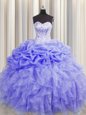 Home >  Quinceanera Dresses >  New Arrival Quinceanera Dresses > Pretty Pick Ups Visible Boning Lavender Sleeveless Organza Lace Up Sweet 16 Dress for Military Ball and Sweet 16 and Quinceanera