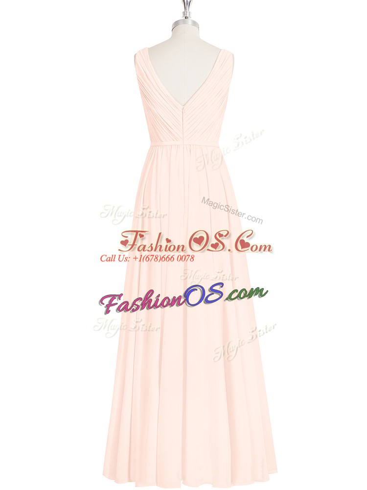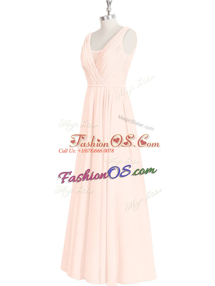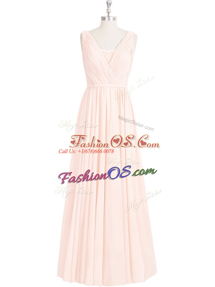 Pretty Pink Prom and Party with Lace V-neck Sleeveless Zipper