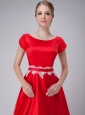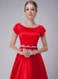 Home >  Special Occasion Dresses >  Mother of the Bride Dresses > Pretty Red A-line Scoop Mother Of The Bride Dress Taffeta Appliques Floor-length