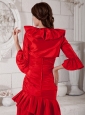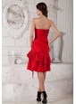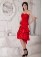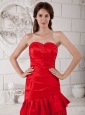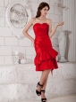 Pretty Red Column Mother of the Bride Dress Sweetheart Ruch Knee-length Satin