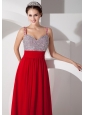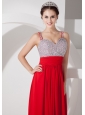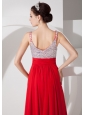 Pretty Red Empire Straps Prom Dress Chiffon Beading and Ruch Floor-length