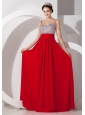 Home >  Prom Dresses >  Best Prom Dresses > Pretty Red Empire Straps Prom Dress Chiffon Beading and Ruch Floor-length