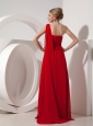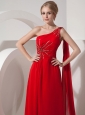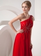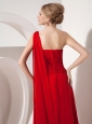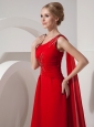 Pretty Red Evening Dress Empire One Shoulder Chiffon Beading Watteau Train
