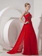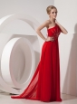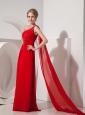 Home >  Evening Dresses > Pretty Red Evening Dress Empire One Shoulder Chiffon Beading Watteau Train
