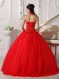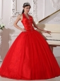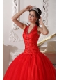 Home >  Quinceanera Dresses >  15 Quinceanera Dresses > Pretty Red Quinceanera Dress Halter Tulle Beading Ball Gown