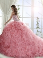Pretty Rolling Flowers Turquoise Detachable Quinceanera Skirts with Brush Train