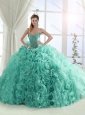 Home >  Quinceanera Dresses >  Detachable Quinceanera Skirts > Pretty Rolling Flowers Turquoise Detachable Quinceanera Skirts with Brush Train