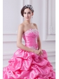 Home >  Quinceanera Dresses >  Luxurious Quinceanera Dresses > Pretty Rose Pink Strapless Appliques 2014 Quinceanera Dress with Appliques