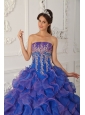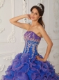 Pretty Royal Blue and Purple Quinceanera Dress Strapless Organza Beading and Appliques Ball Gown