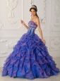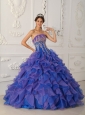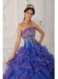 Home >  Quinceanera Dresses >  Puffy Quinceanera Dresses > Pretty Royal Blue and Purple Quinceanera Dress Strapless Organza Beading and Appliques Ball Gown