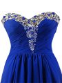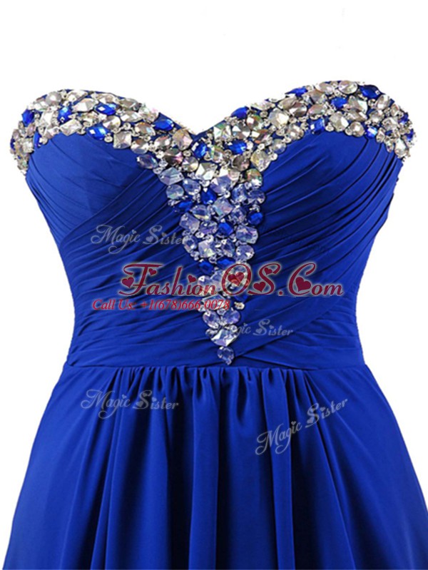 Home >  Special Occasion Dresses >  Homecoming Dresses > Pretty Royal Blue Elastic Woven Satin Lace Up Sleeveless Brush Train Beading
