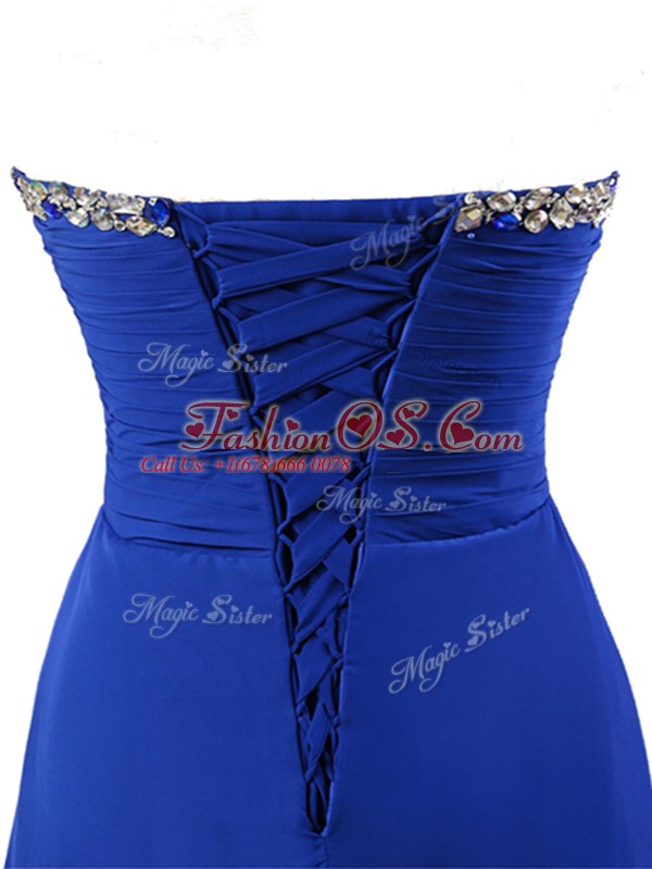 Pretty Royal Blue Elastic Woven Satin Lace Up Sleeveless Brush Train Beading
