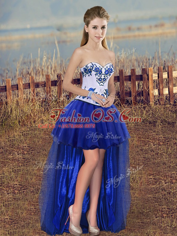 Pretty Royal Blue Sweetheart Neckline Embroidery and Bowknot Quinceanera Gown Sleeveless Lace Up