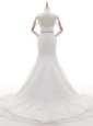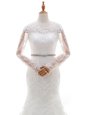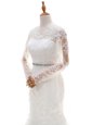 Pretty Scoop Lace With Train Mermaid Long Sleeves White Bridal Gown Brush Train Clasp Handle