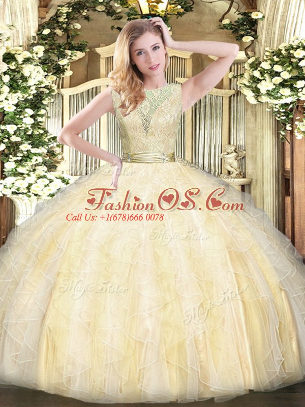 Pretty Scoop Sleeveless Backless Quince Ball Gowns Light Yellow Organza