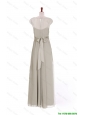 Pretty Simple Bateau Grey Long Prom Dresses with Beading and Sashes