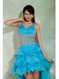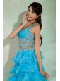 Home >  Prom Dresses >  High Low Prom Dresses > Pretty Sky Blue A-line / Princess Straps High-low Prom Dress Organza Beading