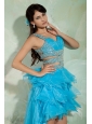 Pretty Sky Blue A-line / Princess Straps High-low Prom Dress Organza Beading