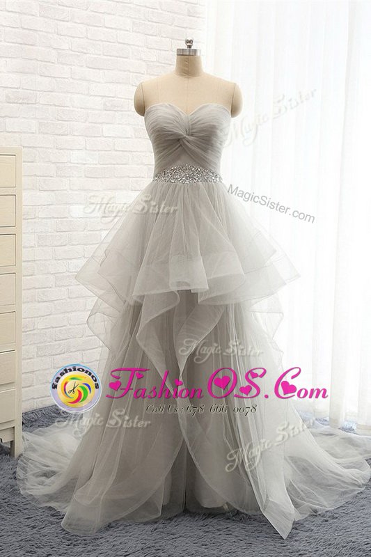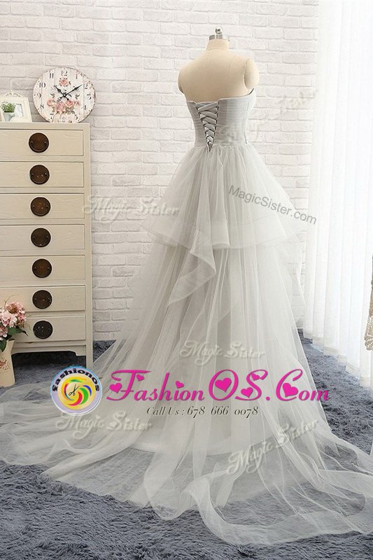 Pretty Sleeveless Brush Train Lace Up With Train Ruching Homecoming Dress