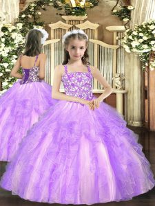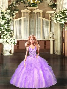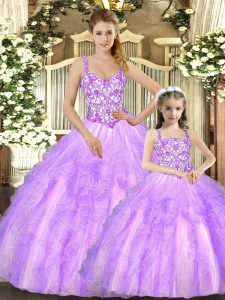 Pretty Sleeveless Floor Length Beading and Ruffles Lace Up Quinceanera Dress with Lilac