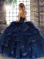Pretty Sleeveless Floor Length Beading and Ruffles Lace Up Sweet 16 Quinceanera Dress with Lilac