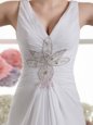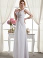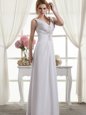 Pretty Sleeveless Floor Length Beading Lace Up Wedding Dress with White