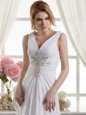 Home >  Wedding Dresses >  Low Cost Wedding Dresses > Pretty Sleeveless Floor Length Beading Lace Up Wedding Dress with White
