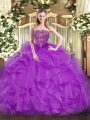 Pretty Sleeveless Organza Floor Length Lace Up 15th Birthday Dress in Purple with Beading and Ruffles