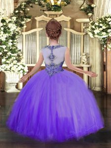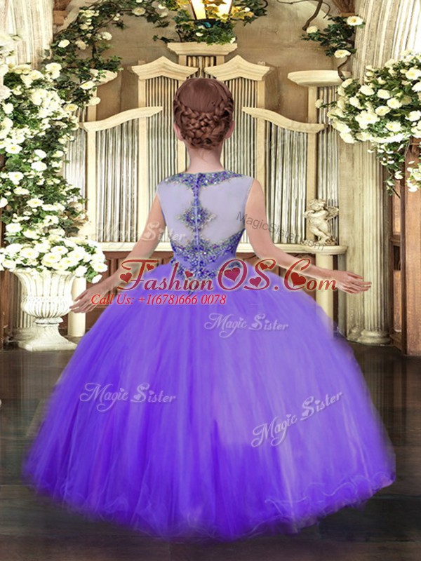 Pretty Sleeveless Tulle Floor Length Zipper Little Girl Pageant Gowns in with Beading