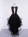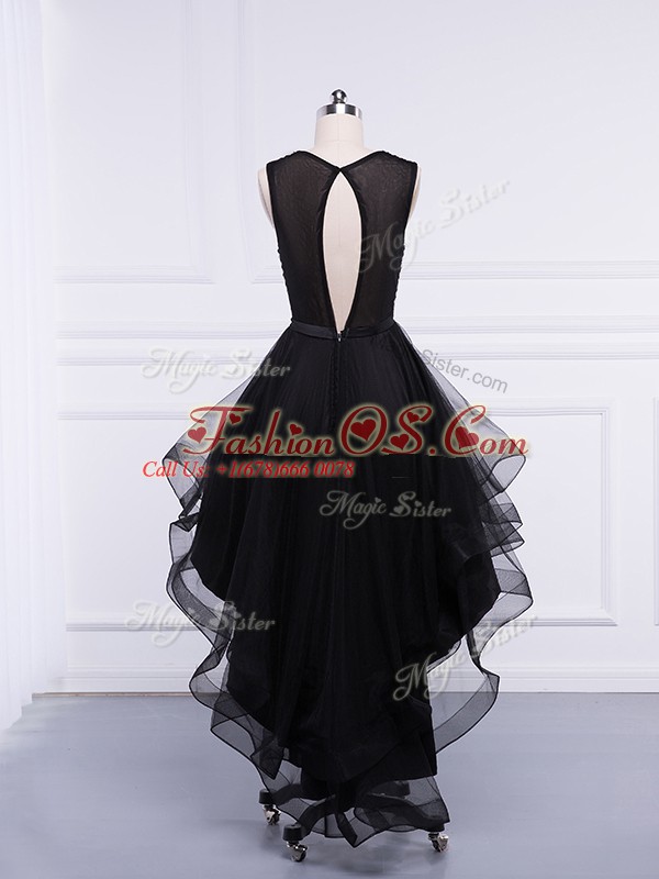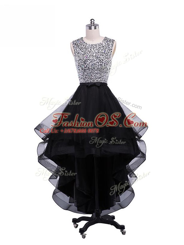 Pretty Sleeveless Zipper High Low Beading and Ruffles Prom Dresses