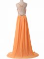 Pretty Sweep Train Empire Juniors Party Dress Turquoise Spaghetti Straps Chiffon Sleeveless Backless