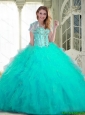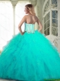 Pretty Sweetheart Aqua Blue Quinceanera Dresses with Beading and Ruffles For 2015 Summer