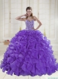 Pretty Sweetheart Brush Train Beading Quinceanera Dresses in Purple