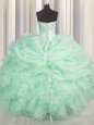 Pretty Sweetheart Sleeveless Organza 15 Quinceanera Dress Beading and Ruffles Lace Up