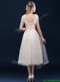 Pretty Tea Length A Line Prom Dress with Cap Sleeves