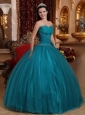 Home >  Quinceanera Dresses >  Discount Quinceanera Dresses > Pretty Teal Quinceanera Dress Sweetheart Tulle Beading Ball Gown