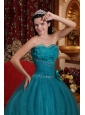 Pretty Teal Quinceanera Dress Sweetheart Tulle Beading Ball Gown