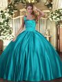 Pretty Teal Sleeveless Ruching Floor Length Quinceanera Dresses