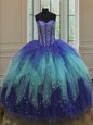 Pretty Tulle Sleeveless Floor Length Quinceanera Dress and Beading and Ruffles