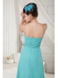 Pretty Turquoise Bridesmaid Dress Empire Sweetheart Chiffon Ruch Brush Train