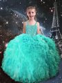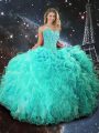 Pretty Turquoise Organza Lace Up Sweetheart Sleeveless Floor Length Quinceanera Dresses Beading and Ruffles