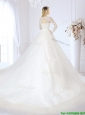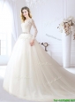 Pretty V Neck Beaded and Laced Wedding Dress with Chapel Train